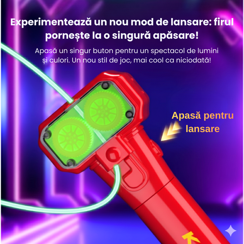 Cu o sfoară luminoasă care creează iluzii spectaculoase și un sistem inteligent care face lasso-ul să “leviteze” în aer, această jucărie aduce magie în mâinile tale, fie că ești copil, adolescent sau adult în căutare de relaxare și ceva cool.